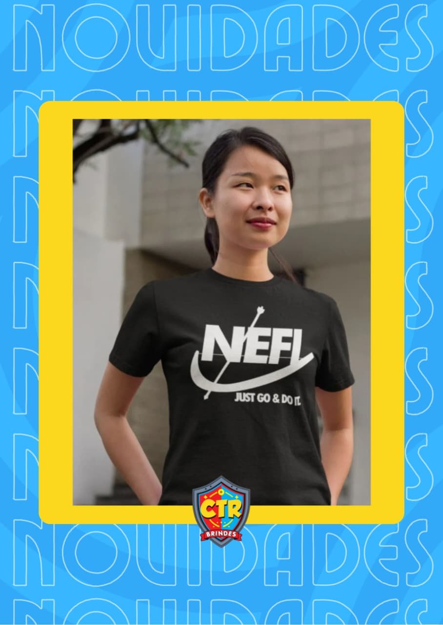 Camiseta em algodão com personalização representando o Arco de Néfi.