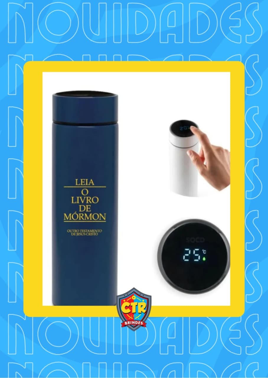 Garrafa Térmica com sensor de temperatura em Led “Leia o Livro de Mórmon”